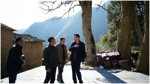 朱部长一行首先来到西游自然村,对村里正在开展的“三治一提升”工作给予高度的肯定。“三治一提升”工作是新昌县围绕“村容整洁、乡风文明”的目标,深入开展以“治脏、治乱、治臭,提升美丽乡村建设水平”为主要内容的专项行动。龙潭背村由于地处高山,位置偏僻,交通不便,且村级集体经济薄弱,整治工作一直未能全面展开。下半年,在镜岭镇党委政府的大力支持下,村两委会下定决心,把整治工作作为村里的头等大事来抓,对村内道路进行拓宽、硬化,建造公共厕所,消除村内随处可见的露天粪坑现象,使村里环境有了较大的改观。